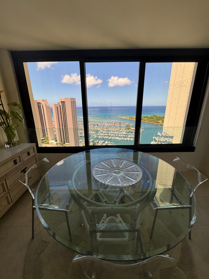 Residents enjoy resort-style amenities including a pool, jacuzzi, tennis court, BBQ and picnic areas, 24-hour security, and secure covered parking. Perfectly situated at 1650 Ala Moana Boulevard, Yacht Harbor Towers offers unbeatable access to Ala Moana Center, Ala Moana Beach Park, and vibrant Waikīkī—all just steps from your door.