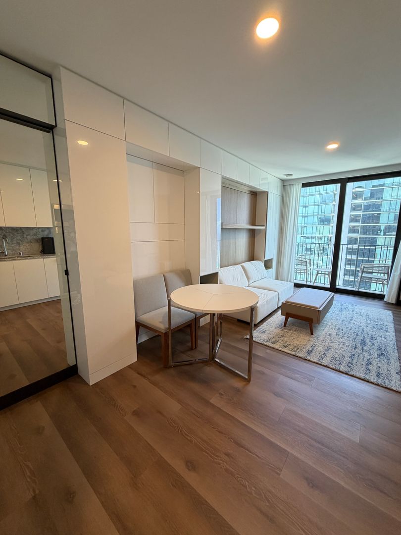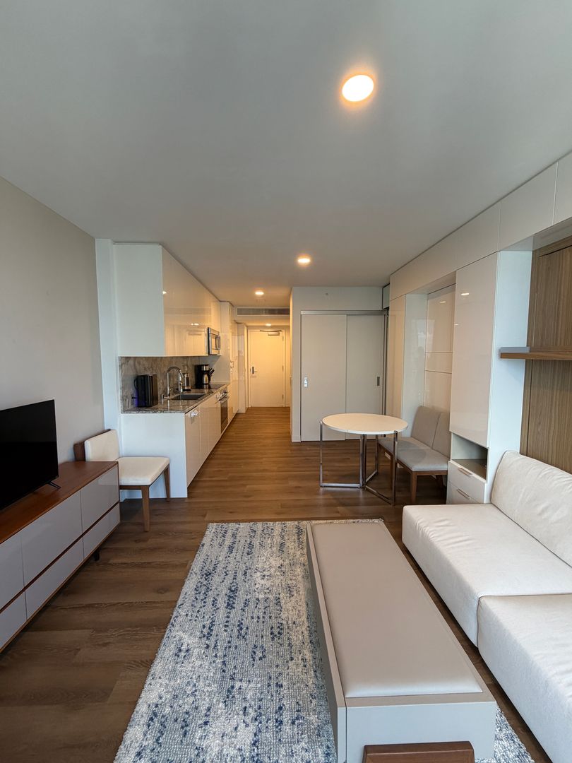 Welcome to #3710 at 'A'ali'i, a beautifully appointed fully furnished studio in the heart of Ward Village. Thoughtfully designed with contemporary finishes, the unit features sleek cabinetry, quality appliances, split AC, and a built-in Murphy bed that maximizes both comfort and functionality, allowing for flexible living space during the day.